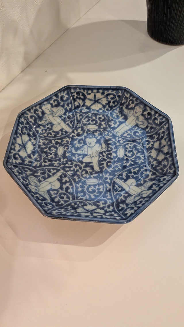 唐子唐草紋八角六寸皿(時代不詳)