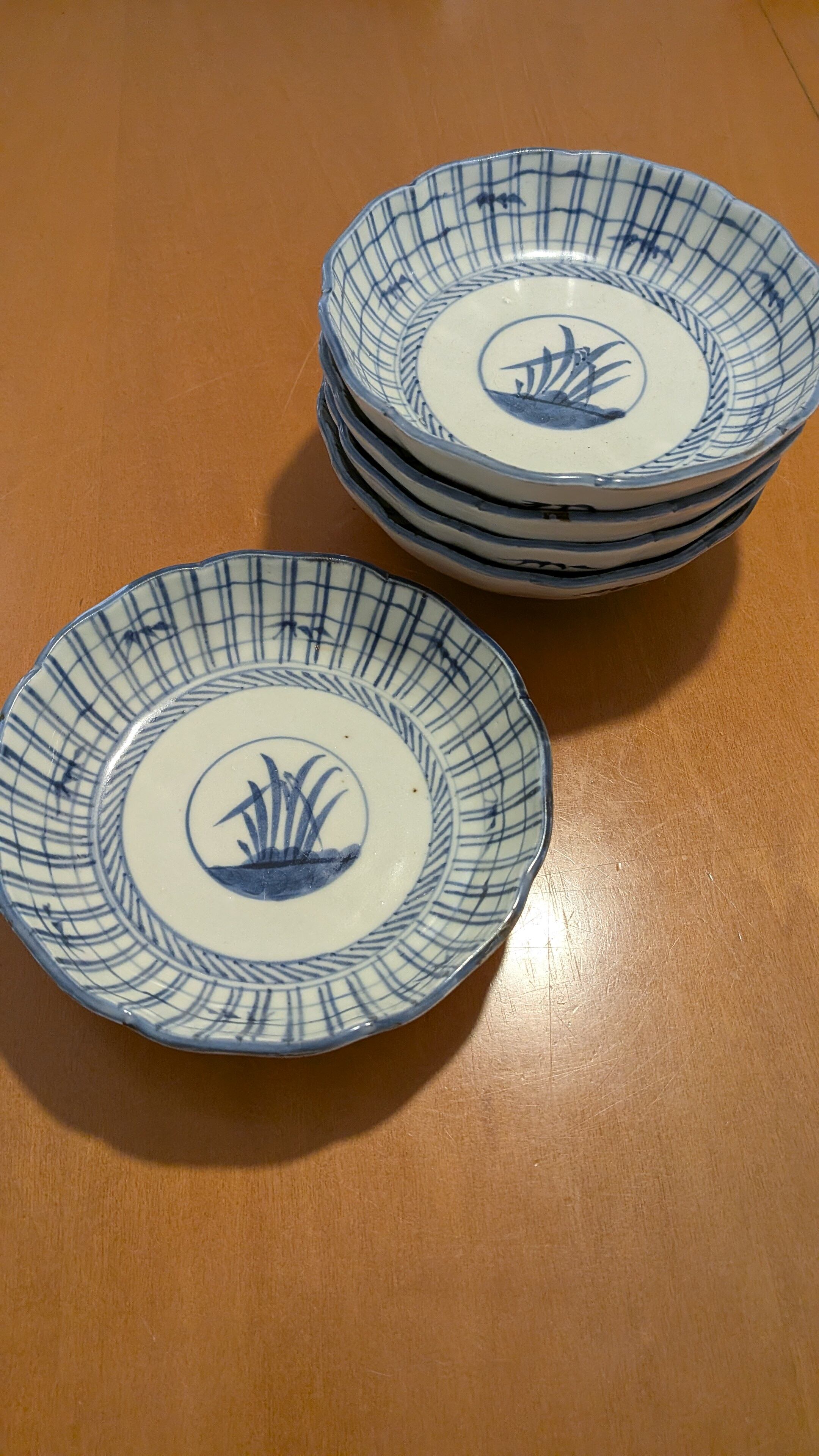 優しい呉須の色。シンプルな格子紋です。