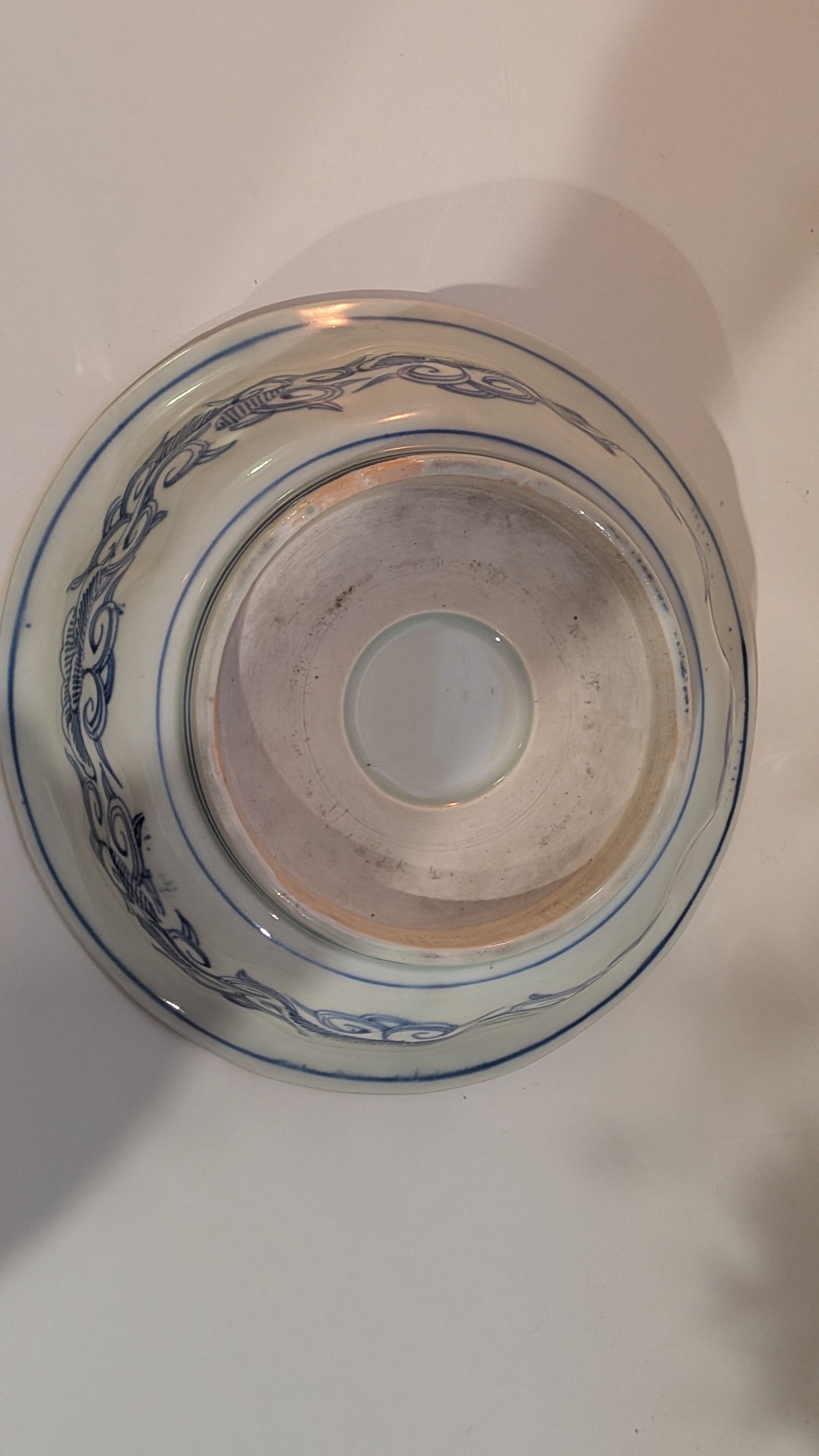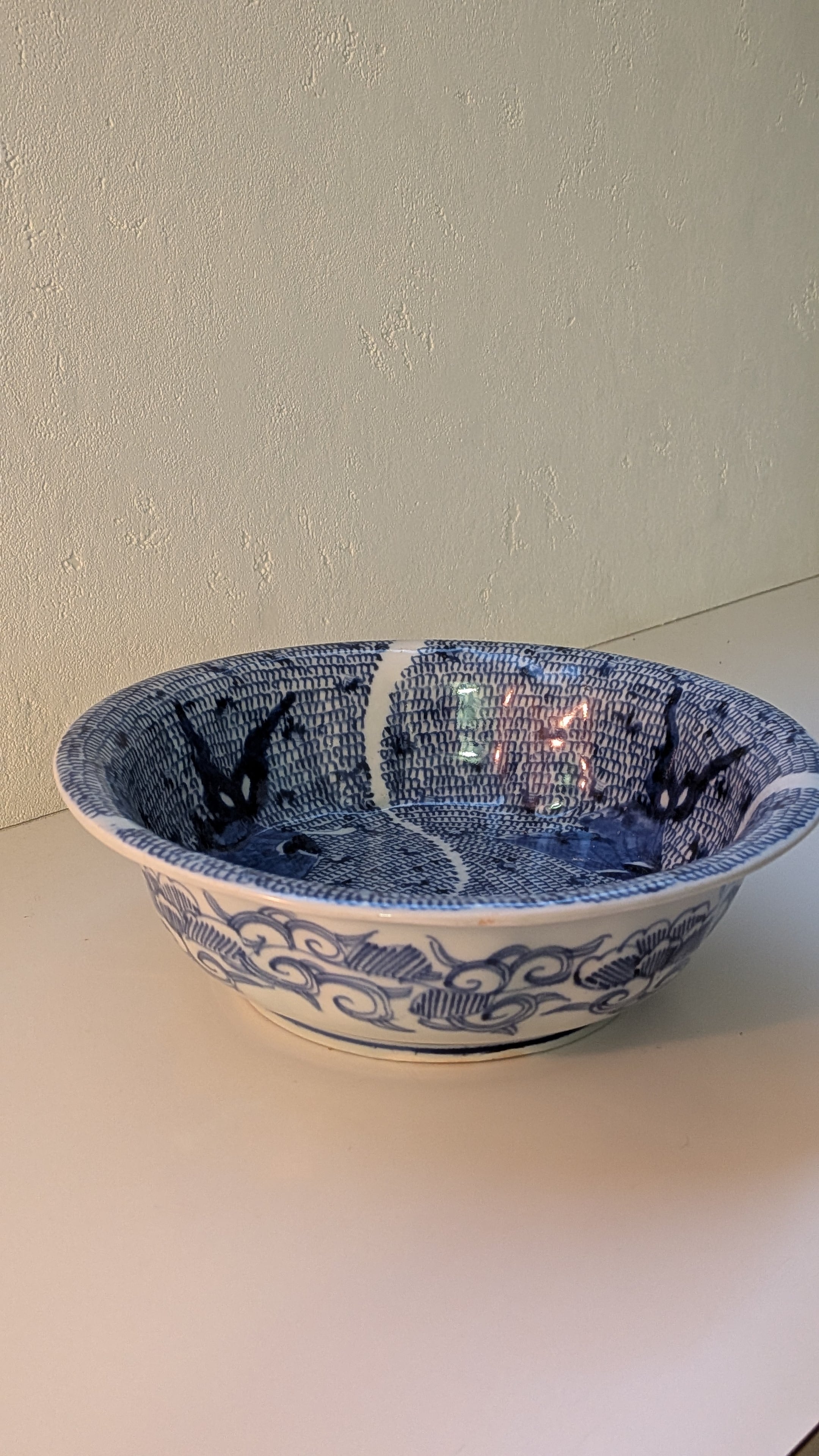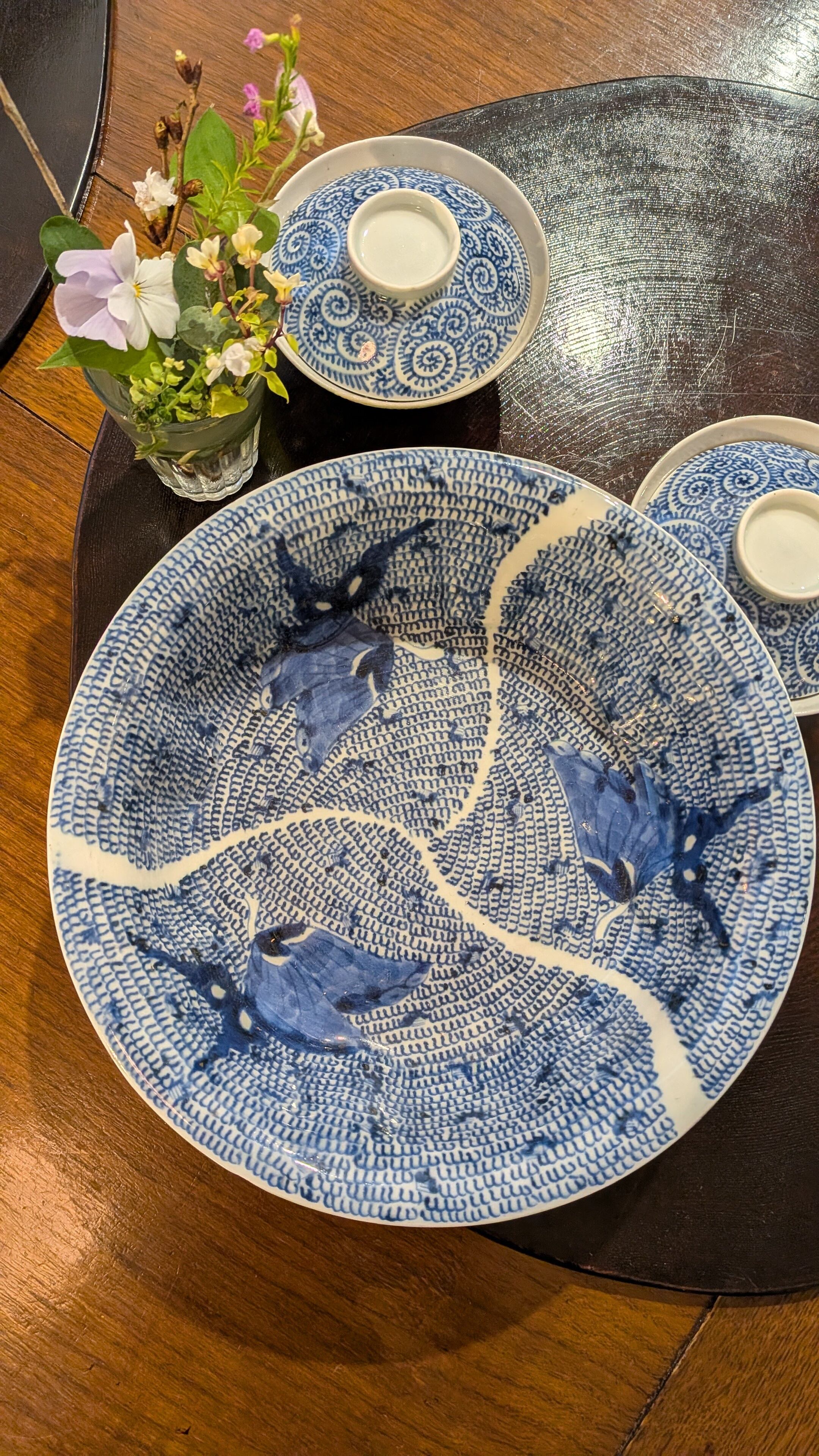 微塵唐草を捻子紋で割って、その中に三羽の蝶々が舞っています。