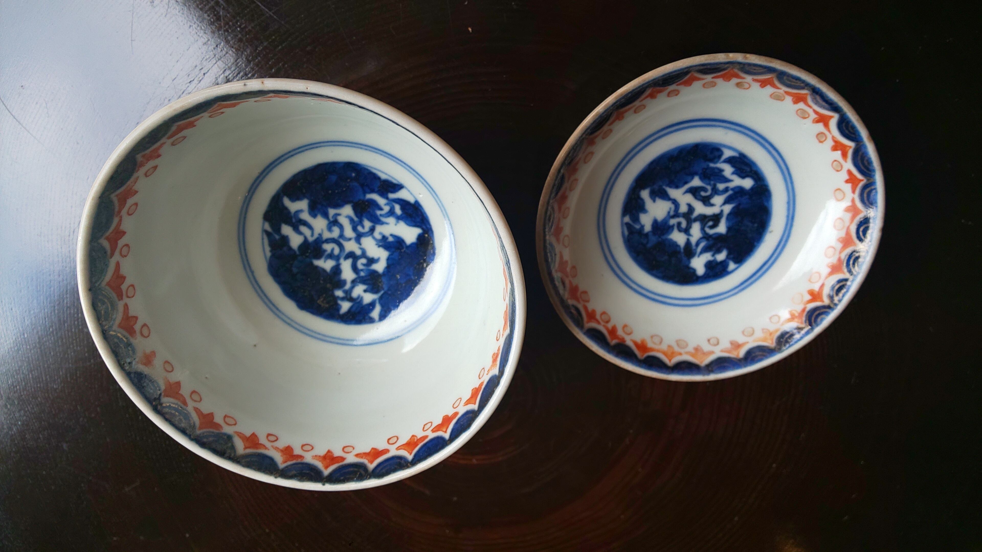 碗の見込みと蓋裏には濃いめの呉須で草花が描かれています。